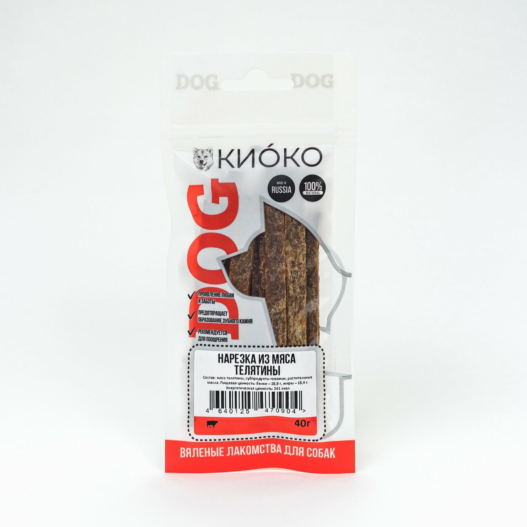 Вяленое лакомство из телятины – не только вкусное разнообразие рациона, но и полезная добавка. Белок, железо, кальций, фосфор, йод, магний, калий, витамины B и С – витамины и минералы, которые в правильном жизненно важном соотношении содержит каждая порция данного лакомства. А уникальная технология вяленья «КИОКО» позволяет сохранить все полезные свойства мясного сырья в готовом виде. Еще одно из полезных свойств данного лакомства – снижение вероятности появления зубного камня на 15-20%. Самый простой способ позаботиться о здоровье вашего питомца! Пищевая ценность: белки – 23,9 г., жиры – 15,4 г. Энергетическая ценность: 241 ккал Срок годности: 12 месяцев Хранить в сухом, защищенном от света месте. При температуре от +4 °C до +25 °C и относительной влажности не более 75%. Рекомендуемая норма потребления не более 10% от суточного рациона. Питомцу необходим постоянный доступ к чистой воде. Вес: 40 гр. Штрих-код: 4640125470904 Состав: мясо телятина, субпродукты говяжьи, растительные масла