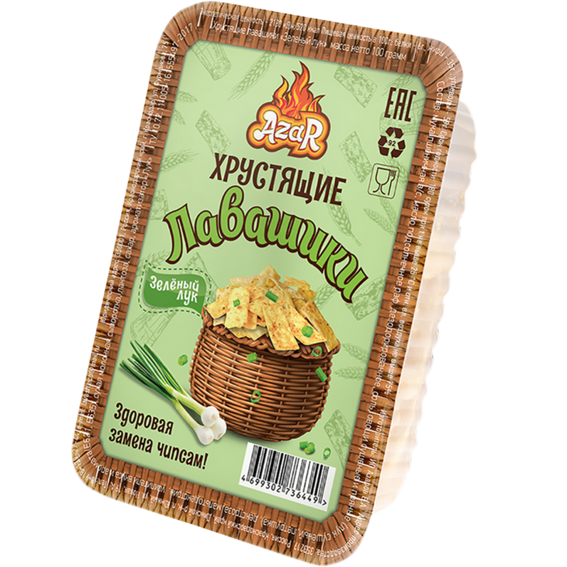 Чипсы из лаваша "AzaR" изготовлены из отборной муки, сочетают в себе вкус нежного кубанского теста и колорит кавказской кухни. Когда хочется чего-нибудь вкусненького и хрустящего обратите внимание на наши хрустящие лавашики и вы будете приятно удивлены сочетанием вкуса, аромата и легкости перекуса.