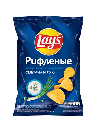 Чипсы картофельные LAY'S Сметана и лук ‒ чипсы, каждая пачка которых изготовлена из специально отобранного картофеля и соответствует самым высоким стандартам качества. Рифленая текстура золотистой отборной картошки, нежный вкус сметаны и аромат молодого зеленого лука ‒ все это в каждой пачке снековLAY'S. Каждый день вкуснее с LAY'S!