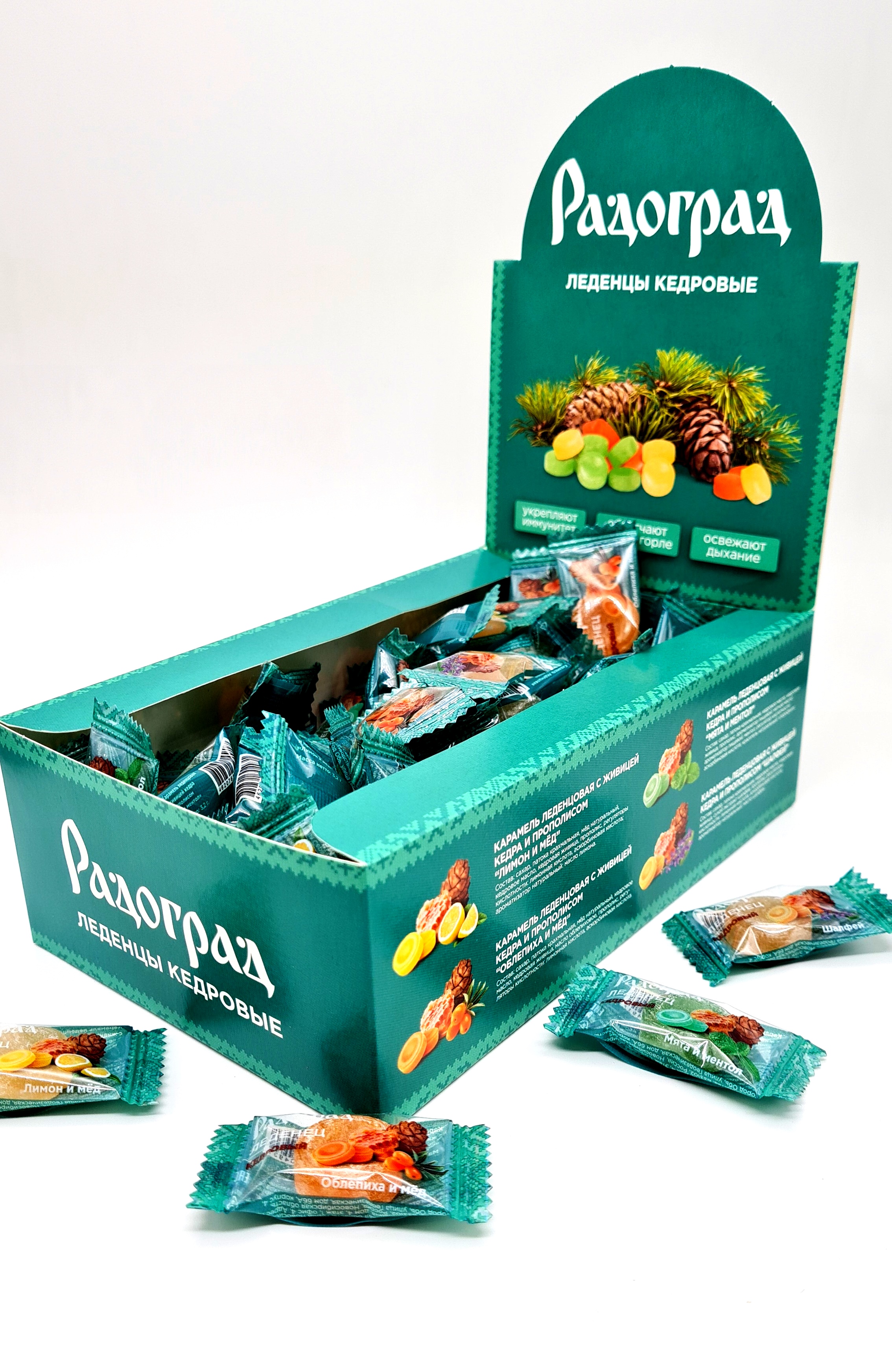 Леденцы «Радоград» помогут облегчить боль в горле, устранят признаки начинающийся простуды и улучшат общее самочувствие, в целом. Удобная форма упаковки, в составе которой все четыре выпускаемых вида леденцов на сахаре, позволит вам познакомиться со всеми вкусами леденцов. В шоу-боксе содержится 80 леденцов. Это особенно удобно для тех, кто имеет большую семью или много друзей. Целая коробка живичных леденцов для горла «Радоград» поможет вам и вашим близким легко пройти через любой сезон простуд, укрепив силы организма природными фитонутриентами.