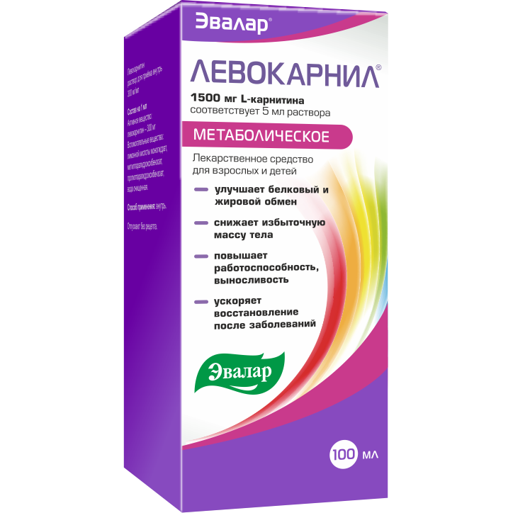 Левокарнил - это лекарственный препарат (не БАД), содержащий левокарнитин (L-карнитин) - это природное вещество, родственное витаминам группы B. Он используется для улучшения обмена веществ и повышения энергообеспечения тканей. Левокарнил применяется в составе комплексной терапии для следующих целей: при интенсивных нагрузках - для повышения физической и умственной работоспособности, выносливости, снижения утомляемости; восстановление - реабилитационный период после заболеваний, травм и хирургических вмешательств; обмен веществ - коррекция нарушений жирового и белкового обмена, борьба с лишним весом; неврология - при сосудистых, токсических и травматических поражениях головного мозга; при заболеваниях в составе комплексной терапии хронического гастрита/панкреатита с пониженной секреторной функцией, гипертиреоза легкой степени, кожных заболеваний.