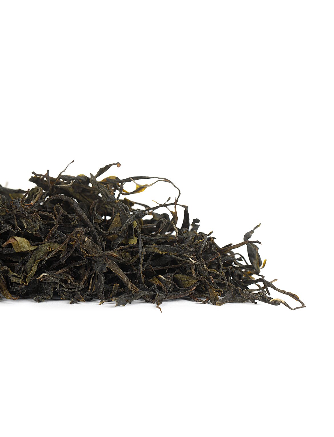 В сухом виде: скрученные тёмно-зелёные листики и почки, местами с вкраплениями светло-зелёных.