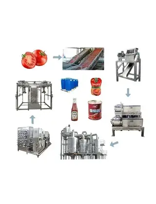 Линия производства томатной пасты направлено на переработку сырья и получение готовых продуктов. Включает в себя:машину для мойки и переборки томатов;дробилку/измельчитель и подогреватель (трубчатый или с рубашкой);протирочную машину или сепаратор для отделения кожицы и семян;вакуум-выпарную установку или концентратор для уваривания до требуемой концентрации;пастеризатор, дозатор и закаточную машину для розлива и герметизации тары.