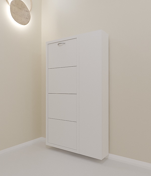 Обувница Люкс Дуэт 4 секции — компактное решение для создания функционального интерьера в небольшой современной прихожей. Производимая нами фурнитура работает по принципу веера, обеспечивая синхронное открытие лотков, и позволит аккуратно хранить всю необходимую обувь. Данная модель имеет дополнительный модуль с полками, в котором вы сможете хранить разные аксессуары. Дополнительный модуль возможно установить как с левой, так и с правой стороны по желанию покупателя. Данный модуль поставляется в разобранном виде. Характеристики: Материал корпуса: ЛДСП. Марки ЛАМАРТИ Материал фасадов: ЛДСП /Стекло /Зеркало. Механизм открывания: синхронное открывание. Система лотков: листовой металлопрокат с полимерным покрытием. Обратите внимание! Обувница крепится к стене(подвесная модель). Крепление в комплекте. Вместимость: от 8 пар