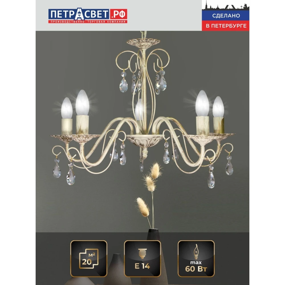 Люстра подвесная Аврора S1155-5 – Великолепие Неоклассики для Вашего Дома Погрузитесь в мир изысканного света с люстрой Аврора S1155-5 от Петрасвет. Эта подвесная люстра, сочетающая в себе роскошь неоклассического стиля, станет настоящим украшением вашего дома, создавая атмосферу уюта и элегантности. Идеально подойдет для гостиной, столовой, спальни или другого помещения, где вы хотите подчеркнуть свою индивидуальность и хороший вкус. Непревзойденное Великолепие Хрусталя Сердцем люстры Аврора S1155-5 являются пять великолепных хрустальных подвесок. Каждый элемент изготовлен из высококачественного хрусталя, который превосходно рассеивает свет, создавая игру бликов и теней, подчеркивая красоту интерьера. Хрусталь не только добавляет люстре роскоши, но и является символом чистоты, света и благополучия. Благодаря своему блеску и прозрачности, хрусталь создает ощущение простора и легкости в помещении. Роскошный Дизайн и Неоклассический Стиль Люстра Аврора S1155-5 выполнена в стиле неоклассика, который сочетает в себе элементы классической и современной эстетики. Бежевый цвет светильника с патиной золота придает ему благородный и изысканный вид, идеально вписываясь в различные интерьеры. Патинирование металла придает светильнику винтажный вид, добавляя ему шарма и индивидуальности. Стиль неоклассики предполагает сочетание традиционных форм с современными элементами, что делает эту люстру универсальной и подходящей для различных дизайнерских решений. Люстра идеально дополнит интерьеры в стилях прованс, классика, арт-нуво, лофт (при правильном подходе к декору). Технические Характеристики, Гарантирующие Надежность и Качество Бренд: Петрасвет – российский производитель, известный своим качеством и надежностью. Страна производства: Россия – гарантия соответствия европейским стандартам качества. Материал светильника: Металл – обеспечивает прочность и долговечность конструкции. Цвет светильника: Бежевый с патиной золота – создает атмосферу уюта и элегантности. Тип цоколя: Е14 – обеспечивает совместимость с различными типами ламп. Количество ламп: 5 – обеспечивает достаточное освещение для помещения. Световой поток: 3750 лм – обеспечивает комфортное и равномерное освещение. Площадь освещения: 15-20 м? – подходит для помещений среднего размера. Напряжение: 220 В – стандартное напряжение для большинства розеток. Срок гарантии: 7 лет – подтверждает надежность и качество продукции Петрасвет. Тип монтажа: Подвесной – обеспечивает гибкость в размещении. Направление рассеивателя: Вверх – обеспечивает равномерное распределение света по помещению. Тип крепления: Крюк – обеспечивает надежное крепление к потолку. Размер коробки: 20 x 30 x 25 см – удобен для транспортировки и хранения. Варианты Ламп: Гибкость в Выборе Люстра Аврора S1155-5 совместима с различными типами ламп, что позволяет вам выбрать оптимальный вариант освещения в зависимости от ваших предпочтений и бюджета: Накаливания: Классический вариант с теплым светом, создает уютную атмосферу. Однако, имеет низкий КПД и требует частой замены. Светодиодная: Энергоэффективный и долговечный вариант с регулируемой яркостью и цветовой температурой. Идеальный выбор для тех, кто ценит экономию и комфорт. Люминисцентная: Обеспечивает яркий и чистый свет, но может содержать ртуть, что тр