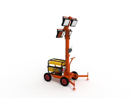 Телескопические мачты изготавливаются из трубы квадратного сечения из алюминия с защитной обработкой поверхности, для защиты от воздействия окружающей среды. Высота подъема прожекторов до 6 метров, транспортировочная тележка на литых колесах с тормозом и поворотной осью, ручная тросовая лебедка, алюминиевая четырехсекционная телескопическая мачта. Полный состав комплекта: телескопическая мачта с лебедкой, тележка с поворотной осью и тормозом, кронштейн для прожекторов с установленными прожекторами 4х200вт, комплект заземления, бензиновый генератор воздушного охлаждения 5кВт.