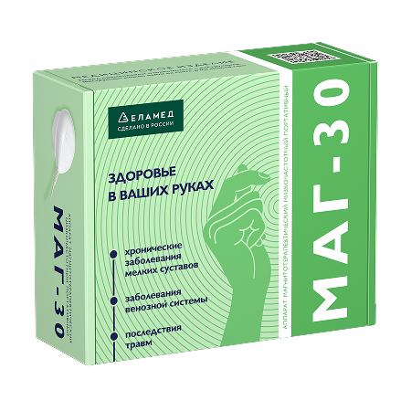 МАГ-30 - это портативный низкочастотный магнитотерапевтический аппарат, предназначенный для лечебного воздействия переменным неоднородным магнитным полем. Применяется в домашних и стационарных условиях для уменьшения боли, снятия отеков, улучшения кровообращения, ускорения восстановления при заболеваниях суставов, позвоночника, травмах и хронических сосудистых патологиях.