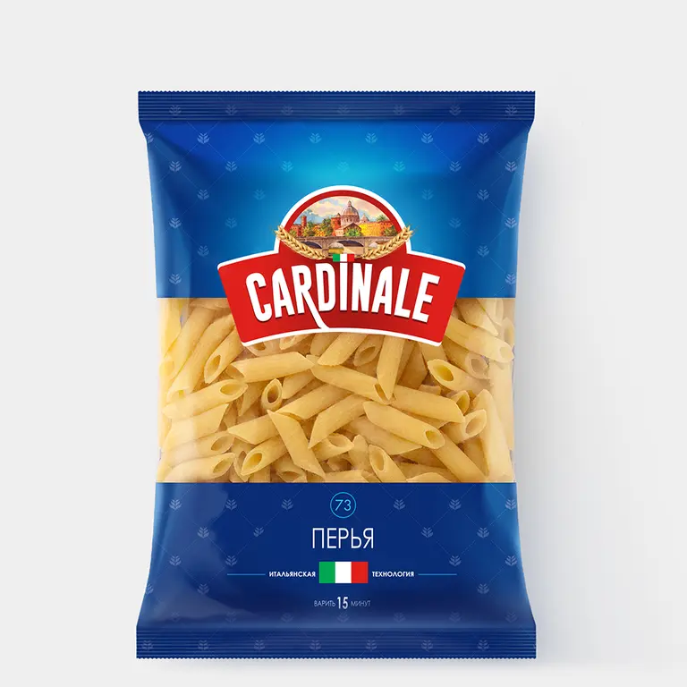Макароны из отборной пшеницы твердых сортов. Мука из твердых сортов пшеницы позволяет производить высококачественные макаронные изделия группы А европейского стандарта. Она отличается от обычной хлебопекарной тем, что содержит много белка, углеводы, Na, K, Р, Ca, Mg, Fe, витамины В1, В2, PP, имеет низкое содержание жиров и крупитчатую структуру. Пшеницу для макаронных изделий собственной торговой марки Cardinale «KDV-Агро» выращивает на экологически чистых полях Алтая. Макароны по итальянской рецептуре произведены на современной автоматизированной линии – на таких же работают фабрики в Италии. Макароны-перья идеально подходят для первых, вторых блюд и теплых салатов. – Макароны-перья – идеальная основа для приготовления итальянской пасты, например, пенне арабьята. В сочетании с соусом из томатов, перца чили и ароматных специй, с добавлением белого сухого вина макароны-перья добавят в ваш ужин дух Италии. – Макароны-перья – идеальная основа для приготовления итальянской пасты, например, пенне арабьята. В сочетании с соусом из томатов, перца чили и ароматных специй, с добавлением белого сухого вина макароны-перья добавят в ваш ужин дух Италии.