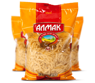 Вся продукция соответствует нормативам и требованиям ГОСТ 31743-2017 и подтверждена сертификатом соответствия. Макаронные изделия изготовлены из экологически чистого сырья, не имеет искусственных добавок, красителей и консервантов. Изделия имеют приятный желтый цвет, насыщены витаминами и микроэлементами, которые полностью сохраняются при используемой нами передовой технологии производства. Прекрасные вкусовые и питательные свойства макаронных изделий обеспечивают высокий устойчивый спрос у потребителя.Макаронные изделия ТМ «АЛМАК» позиционируются, как высококачественный и сравнительно недорогой продукт с прекрасными питательными и вкусовыми свойствами, выпускаемый специалистами-профессионалами на современном итальянском оборудовании «Pavan» и «Tecalit».Пищевая и энергетическая ценность макаронных изделий ТМ «Алмак»
