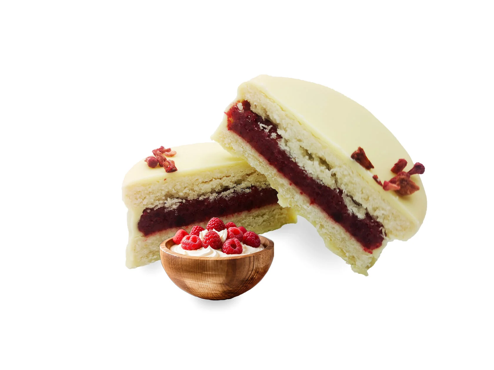 Состав: рисовая мука, кокосовое масло, мальтитол (подсластитель), кукурузный крахмал, миндальная мука, сироп топинамбура, масло-какао, эритрит (подсластитель), малина, кокосовые сливки (мякоть кокосового ореха - 99,9%, ксантановая камедь - 0,1%), инулин (пребиотик), мякоть кокоса, сухое кокосовое молоко (мякоть кокоса, крахмал тапиоки) малина сублимированная, розовая соль.
