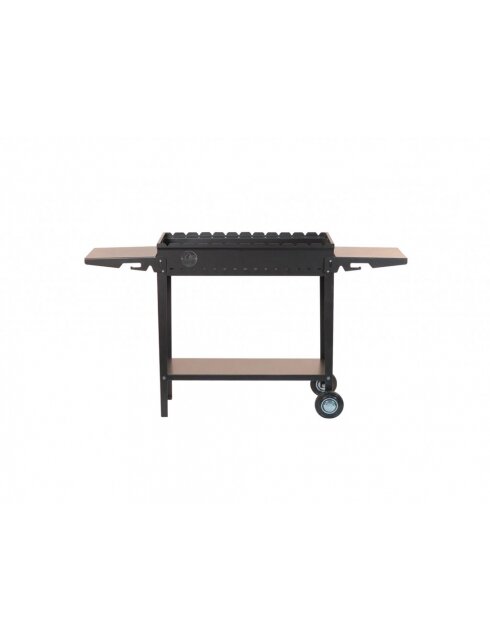 Мангал "Алтай-12" - это многофункциональное устройство для приготовления пищи на свежем воздухе на загородных участках. Различные мясные, рыбные, овощные и другие блюда можно приготовить. Мангал доступен в трех модификациях: на 6, 9 или 12 шампуров. Данная модель мангала имеет вместительную нижнюю полку, соединяющую ножки. Кроме того "Алтай-12" оснащен колесами, которые позволяют легко перемещать его по загородному участку. Мангал можно использовать с различными аксессуарами и приспособлениями, которые могут применяться для приготовления блюд на огне при помощи углей (шампуры, решетки-гриль и т.д).