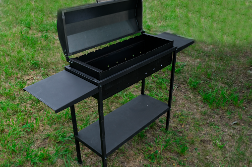 Вечеринки на даче. Боковые столики позволяют разместить всё необходимое для сервировки, а полка — хранить запас угля.