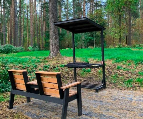 Мангал с крышей “Модерн” - это многофункциональный, кованый, стационарный мангальный комплекс в лаконичном, элегантном стиле, который служит не просто жаровней, а полноценной уличной кухней для приготовления широкого спектра блюд (шашлыки, плов, стейки, барбекю, копчености) и защищает от непогоды, солнца и искр благодаря надежной крыше. Он оснащен жаровней, печкой под казан, столешницами и дровницей, сочетая практичность с эстетикой для дачи или загородного дома. Каркас - 40*40 мм. Сухая строганная доска - 20*95 мм. Покрытие мангала - термостойкая краска. Покрытие каркаса - порошковая краска. Размер жаровни - 1,2*0,4 м. Расчетный размер мангальной зоны - 0.9*0.8*2 м.