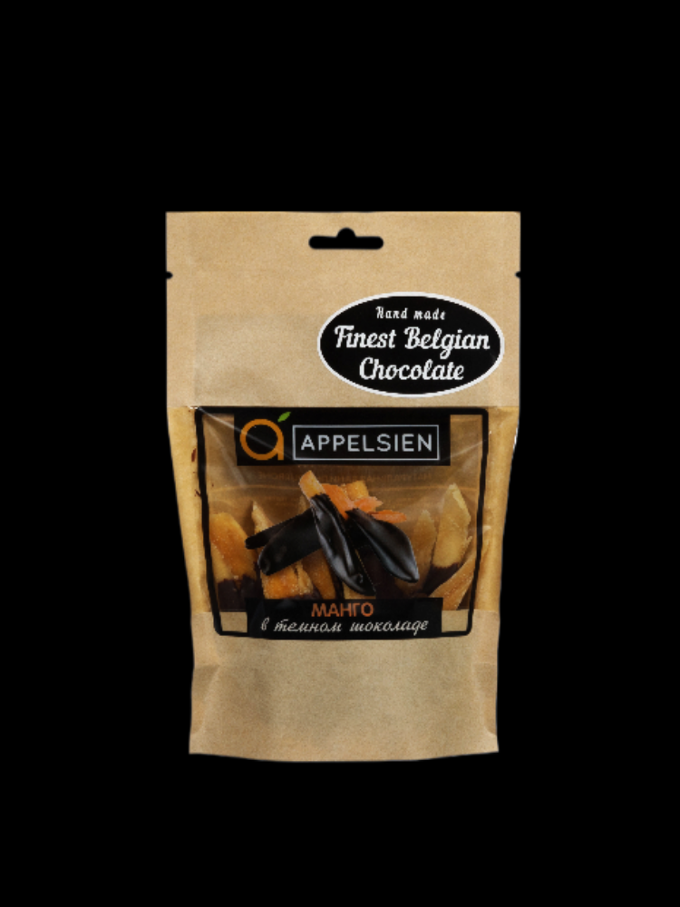 Состав: Изделия кондитерские сахаристые. Манго в тёмном шоколаде. Состав: манго сушеный натуральный с сахаром (листики), тёмный шоколад (какао тертое, сахар, масло какао, эмульгатор: лецитины (соя), натуральный ароматизатор (ваниль)). Массовая доля общего сухого остатка какао - не менее 40%. Массовая доля масла какао - не менее 20%. Возможно наличие следов орехов.