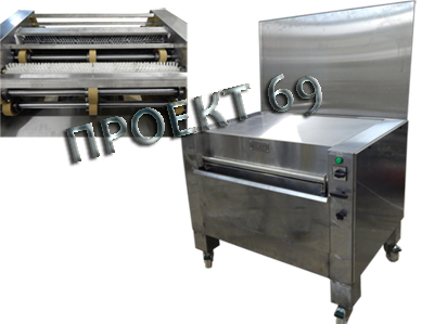 Машина для очистки противней предназначена для очистки профилированных противней и противней с 2-мя бортами и без. Данный вид оборудования позволяет сократить и облегчить ручной труд на любом пищевом предприятии. Противень устанавливается и аккуратно подаётся в приемное - загрузочное "окно". Ход противня вперед-назад составляет один цикл. Два вида щеток металлические и ПА, расположенные сверху и снизу противня, улучшают процесс чистки. А валы способствуют выпрямлению деформированных противней. Мощность суммарная- 2.2 кВт. Напряжение - 380В. Размер противня(ширина, длина) - 600 х 800 (борт 15мм по длине) .Количество обслуживающего персонала - 1 человек.