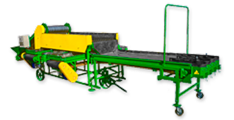 два отводящих транспортера c затаривающим устройством в две сетки для картофеля мелкой и средней фракции;