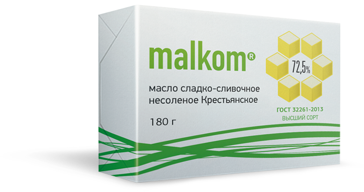 Это натуральное сливочное масло, которое изготавливается исключительно из натуральных сливок высшего качества. Масло «Malkom» имеет нежный сливочный вкус, не содержит консервантов, красителей, вкусовых добавок и ГМО.
