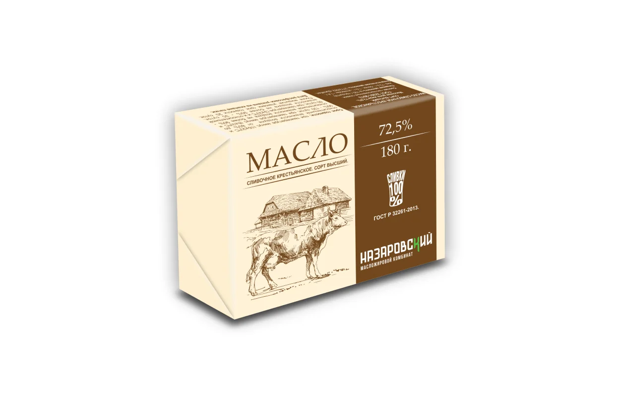 Все наше масло изготовлено по ГОСТ 32261-2013 методом преобразования высокожирных сливок с содержанием молочного жира 72,5% и 82,5%. Высший сорт. Без консерваторов и красителей. 100% сливки.