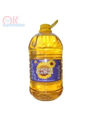 Масло подсолнечное Донская семечка 5 л рафинированное дезодорированное 100% натуральное масло без примесей сторонних дешёвых масел нежно-золотистого цвета, без запаха, без осадка.