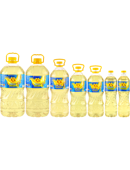 Подсолнечное масло «Живой Янтарь» фасуется в ПЭТ-бутылки объемом 0.9л, 1л, 1.8л, 2л, 2.7л, 4.5л и 5 литров.