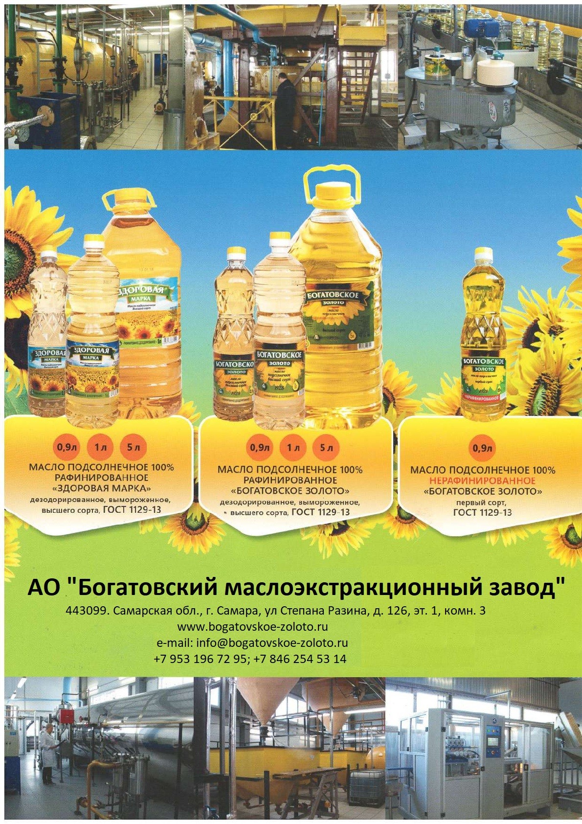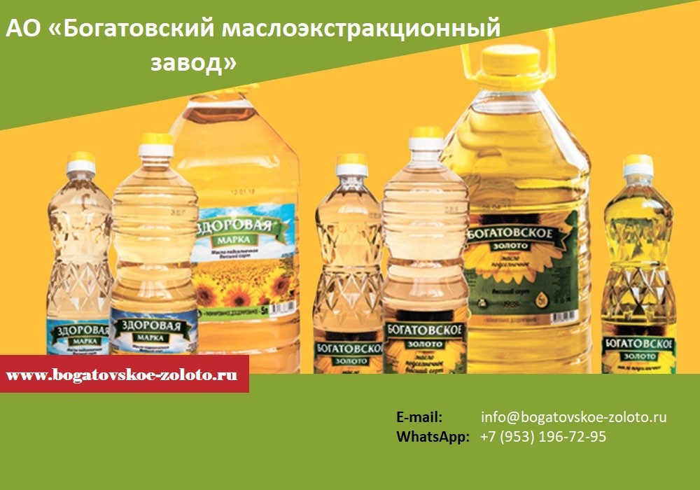 Масло подсолнечное рафинированное дезодорированное вымороженное ТЗ «Богатовское золото», высший сорт, ГОСТ 1129-2013 а также масло подсолнечное рафинированное дезодорированное вымороженное ТЗ «Здоровая марка», высший сорт, ГОСТ 1129-2013 от компании «Богатовский маслоэкстракционный завод», г. Самара.