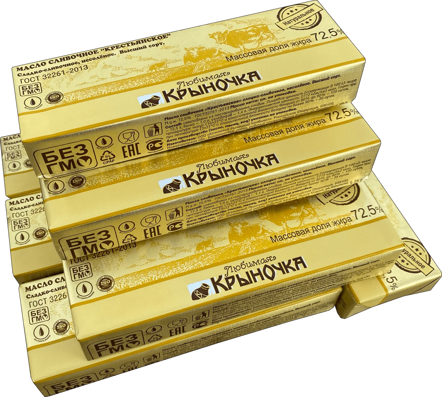 Масло сливочное Крестьянское ГОСТ 32261-2013 72.5% Высший сорт ТМ Любимая Крыночка