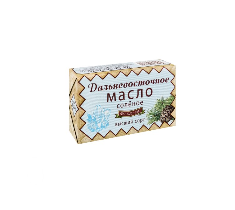Масло сливочное солёное «Дальневосточное» – производится из высококачественных сливок. Масло имеет превосходный и нежный сливочный аромат. Нежное и очень вкусное сливочное масло «Дальневосточное» просто незаменимо для семейного завтрака, подходит для сдобной домашней выпечке и может замечательно дополнить праздничный стол.