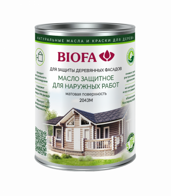 BIOFA 2043M — профессиональное защитное масло с антисептическими свойствами для наружной обработки древесины. Продукт создан на основе натуральных компонентов с добавлением специальных биоцидных добавок для максимальной защиты деревянных конструкций.