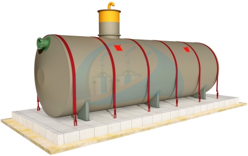 Маслосборник 50 м3 предназначен для аварийного сбора, временного хранения и последующей переработки трансформаторного масла, сливаемого из силовых трансформаторов, автотрансформаторов, масляных выключателей и другого маслонаполненного электрооборудования. Маслосборник представляет собой горизонтальный сварной стальной резервуар с коническими днищами, усиленный кольцевыми ребрами жёсткости для повышения прочности и устойчивости к внешним механическим воздействиям и грунтовым нагрузкам. Объем резервуара -50 м3. Пробное при испытании - 0,75 МПа. Давление расчетное - 0,7 МПа. Диаметр цилиндра - 2800 мм.