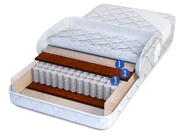 Матрас НОРМА 300 двухсторонний Чехол из любой ткани простеган со смягчающим настилом Hollcon. Состав: 1 - высокоэластичная пена: экологически чистый и гипоаллергенный материал; 2 - кокосовая койра: натуральный материал, обладающий антибактериальными и гипоаллергенными свойствам. Имеет хорошие ортопедические свойства; 3 - блок независимых пружин, которые создают ортопедический эффект во время сна. Возможные размеры (Ширина*Глубина*Высота) 80*190*24 см. 90*190*24 см. 140*190*24 см. 160*190*24 см. 180*190*24 см. 200*190*24 см. 80*195*24 см. 90*195*24 см. 140*195*24 см. 160*195*24 см. 180*195*24 см. 200*195*24 см. 80*200*24 см. 90*200*24 см. 140*200*24 см. 160*200*24 см. 180*200*24 см. 200*200*24 см. Гарантия: 24 месяца