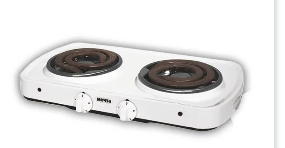 Классическая двухконфорочная настольная электрическая плита Мечта Основные характеристики 2 ТЭН-конфорки мощностью 1 кВт каждая 4 ступени переключения мощности эмалевое покрытие Технические характеристики Исполнение белая / черная эмаль Тип электроконфорок ТЭН Количество электроконфорок, шт. 2 Диаметр электроконфорок, мм 145 Установленная мощность, кВт не более 2,0 Регулирование мощности электроконфорок ступенчатое
