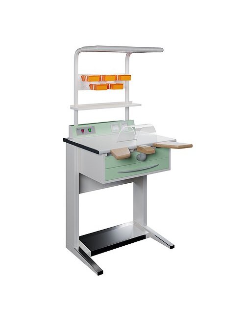 Медицинский стол зубного техника "Бюджет" - это специализированное, функциональное рабочее место для зуботехнических лабораторий, предлагающее оптимальный набор базовых функций по доступной цене. Он предназначен для удобного и безопасного изготовления протезов, обработки материалов и размещения оборудования. Стол зубного техника поставляется в комплекте со светильником, полкой, подлокотниками, финагелем с защитным стеклом, двумя розетками и подставкой для ног. Высота - 1655 мм. Высота стола - 900 мм. Ширина - 729 мм. Глубина - 568 мм.