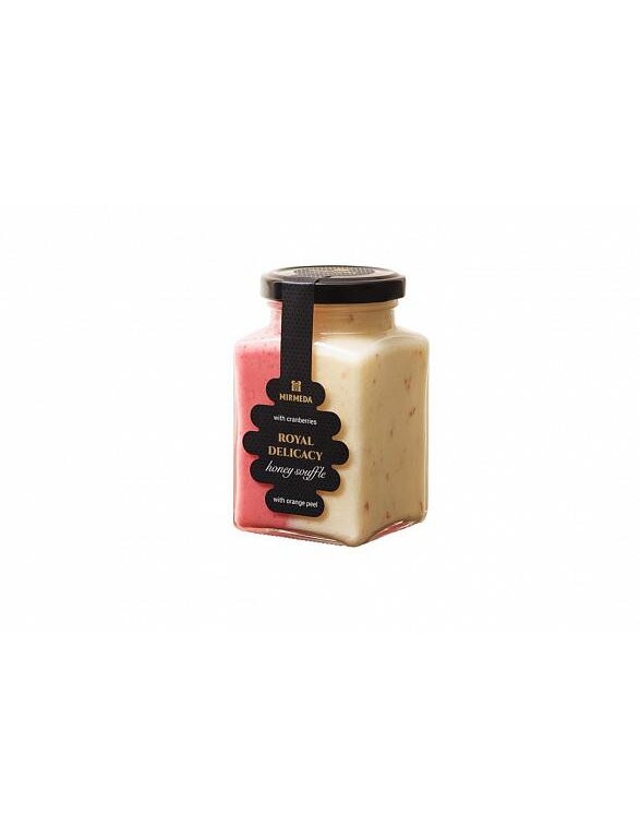 Медовый деликатес с клюквой и апельсиновой цедрой имеет стильное вертикальное деление на два свежих бодрящих вкуса. Свое гастрономическое путешествие начните с сочных апельсинов, утопающих в теплых объятиях медового суфле. Затем перейдите к клюквенно-медовому коктейлю и насладитесь пикантной кислинкой красной ягоды. Фантазируйте и смешивайте вкусы, ведь вы главный дирижер в этой сладкой феерии! В баночке содержится множество витаминов, минералов, органических кислот для укрепления иммунитета и борьбы с простудой. Лакомство незаменимо в зимний период, когда организм нуждается в дополнительной поддержке. В производстве десерта использованы только натуральные ингредиенты.