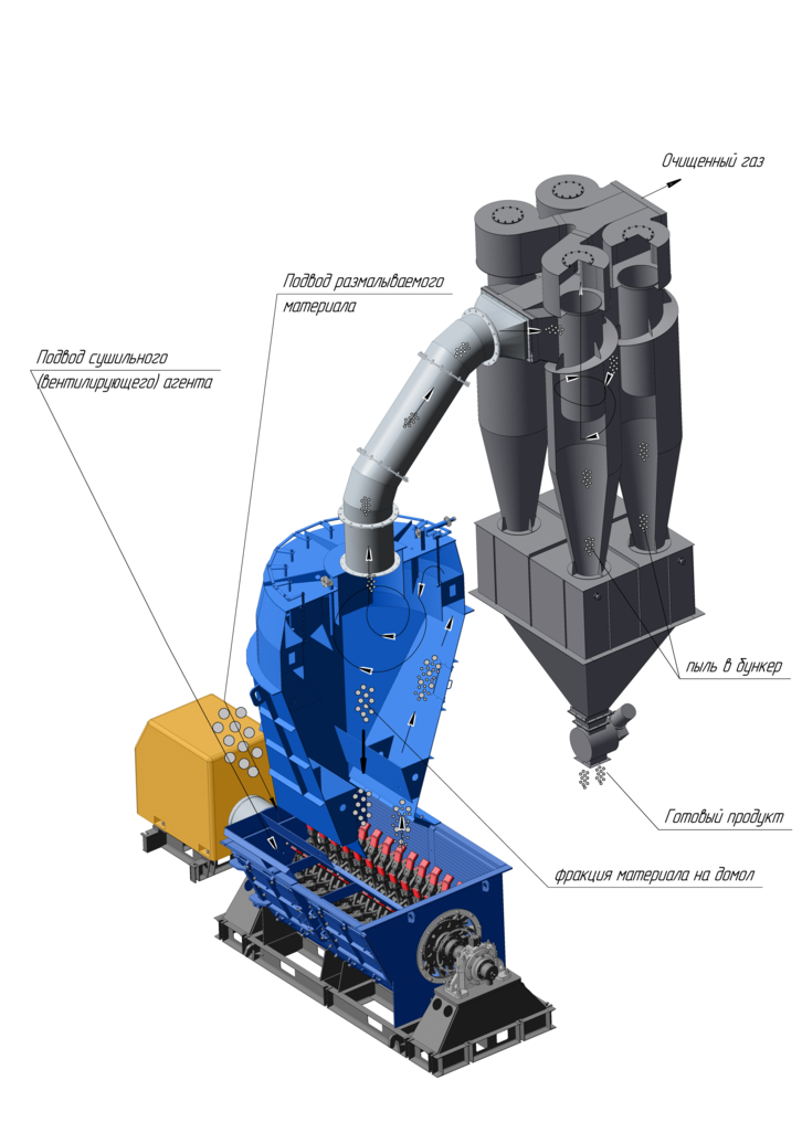 Мельницы молотковые тангенциальные ММТ 1300/ 830