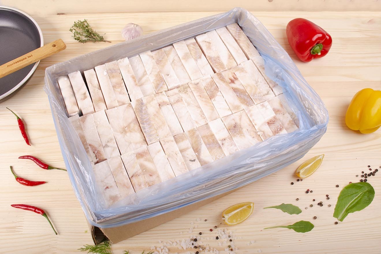 Минтай филе без кожи и костей (морская заморозка) с/м порционный по 100 гр, коробка 4 кг