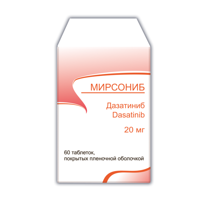 Мирсониб - это противоопухолевый лекарственный препарат, ингибитор протеинтирозинкиназы, содержащий действующее вещество - дазатиниб. Он применяется для лечения хронического миелолейкоза (ХМЛ) и острого лимфобластного лейкоза (ОЛЛ), в том числе при непереносимости других препаратов. Поставляется в виде таблеток в пленочной оболочке, по 60 штук в упаковке.