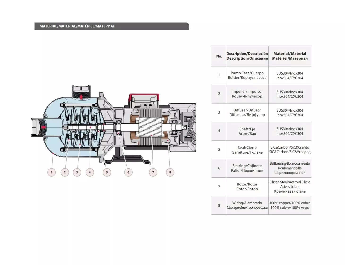 Тип конструкции насоса: многоступенчатые