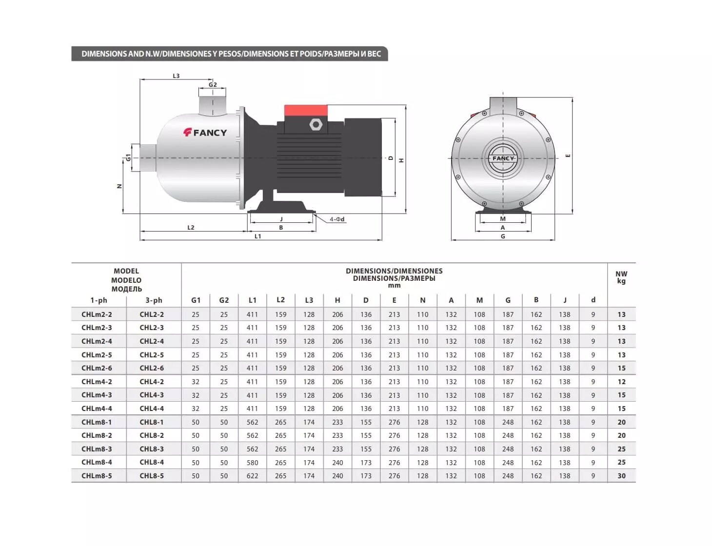 В серию Fancy CHL входят более двух десятков разных по характеристикам и размерам моделей многоступенчатых горизонтальных центробежных насосов. Основным материалом изготовления оборудования выступает оцинкованная сталь, что в сочетании с эффективными конструктивными решениями предоставляет будущим владельцам ряд весомых преимуществ. Особенно важное значение имеет многоступенчатая конструкция насоса. Она состоит в наличии нескольких ступеней в виде герметичных камер, внутри каждой из которых размещается рабочее колесо. Принцип функционирования изделия в таком варианте предусматривает постепенное перемещение жидкости от первой камеры к последующим с одновременным нагнетанием давления на очередном шаге. Что позволяет добиться на выходе очень существенной разницей с показателем напора на входе.Fancy CHL представляют собой горизонтальные центробежные электронасосы, предназначенные для перекачивания низковязких, нейтральных, невзрывоопасных жидкостей не содержащих твердых частиц и волокон в системах водоснабжения жилищнокоммунального хозяйства и промышленных систем. Насосs широко применяется для подачи воды в промышленности и сельском хозяйстве, системах водоподготовки, циркуляции воды, орошения и т.д.