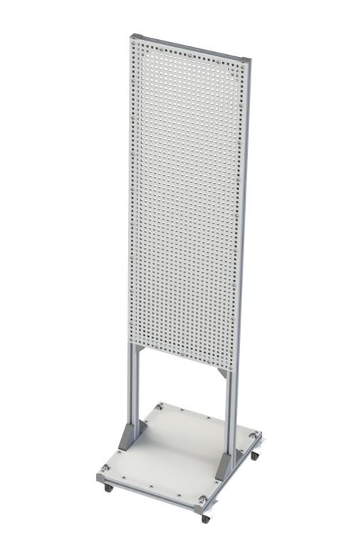 Мобильный стенд-стойка с перфорированными панелями, на колесах из алюминиевого конструкционного профиля - удобное и практичное решение для демонстрации различного оборудования и систем, которые нужно разместить и соединить для удобного обзора в учебных классах, демонстрационных залах, выставках и т.д. Конструкция стеллажа выполнена из высококачественного алюминиевого профиля, что обеспечивает легкий вес и прочность. Кроме того, алюминий обладает высокой стойкостью к коррозии и агрессивным средам, что делает этот стеллаж идеальным для использования в условиях повышенной влажности и химической активности. Конструкция стеллажа оснащена четырьмя поворотными колесами, что обеспечивает легкость и маневренность при передвижении. Кроме того, колеса имеют специальное покрытие, которое предотвращает повреждение пола и обеспечивает бесшумное передвижение. В целом, мобильный стеллаж-стойка на колёсах из алюминиевого конструкционного профиля – это практичное и эффективное решение для организации хранения кабельной продукции, катушек, шлангов и рукавов высокого давления. Он обеспечит порядок и удобство в работе, делая ваш рабочий процесс более организованным и продуктивным.
