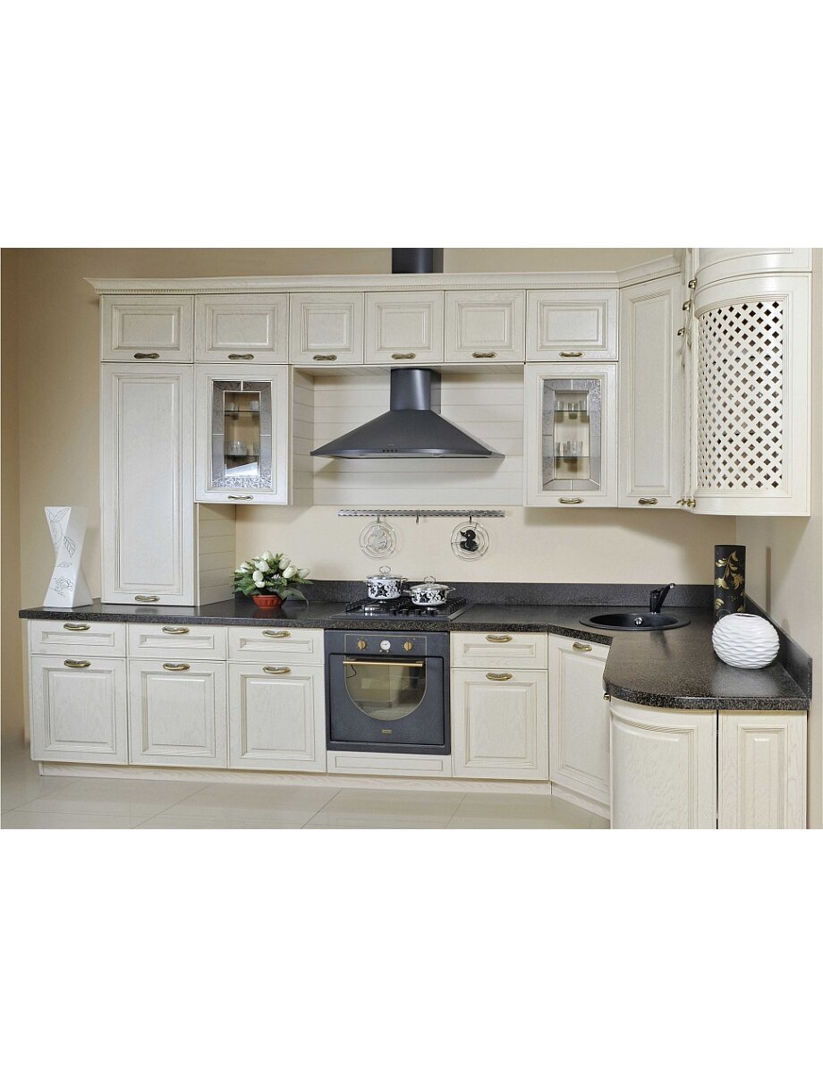 Категория: Классическая кухня Материал: Фасад из массива Дуба Цвет: Эксклюзивный каталог RAL WOOD COLOR PLUS Виды стекла: Витражи Листовое стекло Столешницы: Российские Итальянские