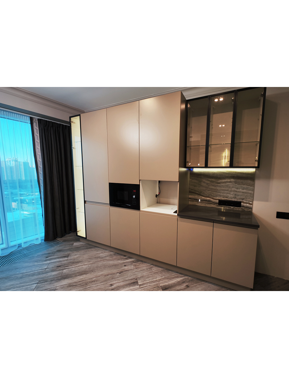 Категория: Модерн Материал: Фасад из МДФ(19мм) Цвет: RAL WOOD COLOR PLUS Виды стекла: Витражи Листовое стекло Столешницы: Российские Итальянские