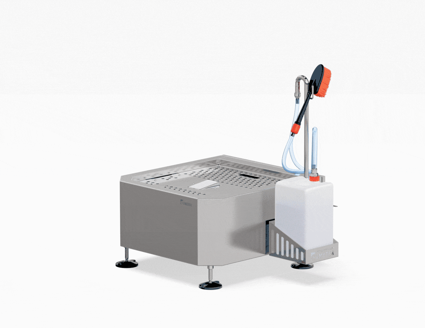 Модуль гигиенический МГРБ-Р8209 предназначен для санитарной обработки подошв обуви раствором при входе и выходе из производственных помещений предприятий пищевой промышленности.