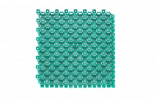 Модульные ячеистые грязезащитные покрытия ПВХ собирают грязь с обуви и не оставляют возможности дальнейшего её проникновения внутрь помещений. Основной задачей является грязезащита, специально разработано для эксплуатации в местах с большим потоком людей, с успехом могут применяться на железной дороге (различные типы вагонов и локомотивов) в качестве тамбурных ковриков. Специальная конструкция модулей - "Антикаблук" предотвращает проваливание каблуков на стыках модулей и является безопасной для женского пола, отдающего предпочтение модельной обуви. Размер модулей - 250*250 мм. Высота модулей - 15 мм. Жесткость - 70-77 ед. Шор А. Относительное удлинение до разрыва - 340%. Рабочий диапазон температур - от -30 *С до +50 *С. Плотность материала - 1.42 г/см3. Уровень грязезадержания - 10 кг/кв.м.