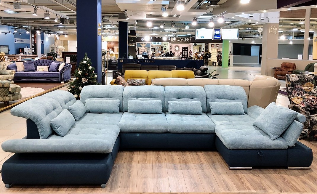 Модульный диван "Коламбия"- воплощение современных тенденций и максимального функционала. Подходит для большой семьи, где каждый выберет для себя удобное место для отдыха. Комплектация (5 модулей: шезлонг, раскладной модуль, угловой модуль, посадочное место с подлокотником): - подушки спинки легко передвигаются, позволяя менять глубину посадки (от 60 до 86 см) - регулируемые подголовники и подлокотники имеют несколько положений (5-ступенчатый механизм) - модуль-шезлонг с подъемным механизмом и вместительной нишей для хранения белья и постельных принадлежностей - просторное спальное место 155 х 300 см для ежедневного сна (матрас в технической ткани) - механизм трансформации "дельфин" - хромированные опоры - комплект приспинных подушек (30х60 см) - 6 шт. Габариты (ШхГхВ): Длина 389 см, глубина по правой стороне - 187 см, глубина по левой стороне - 234 см. Обивочная ткань (категория Comfort): шенилл Tarim 9 (основная ткань - сиденья, спинки, подушки) / рогожка Samoa 5 (царга) - плотная ткань повышенной износоустойчивости, не закатывается, водоотталкивающая, огнестойкая. При заказе дивана цена рассчитывается в зависимости от выбранной комплектации и обивочного материала. Диван в наличии.