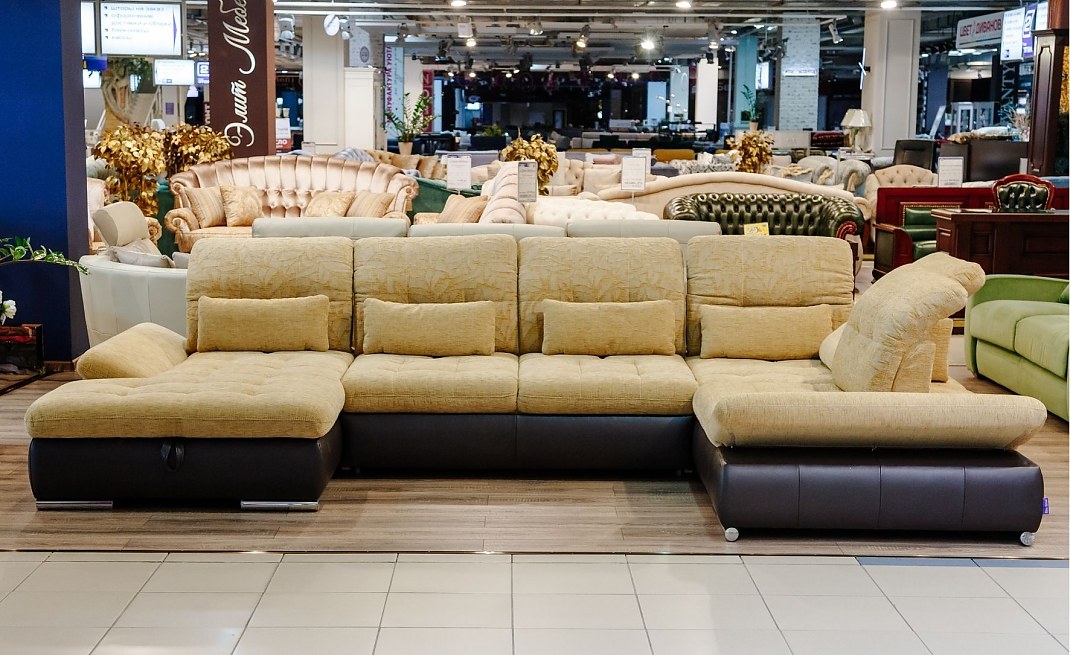 Модульный диван "Коламбия"- воплощение современных тенденций и максимального функционала. Подходит для большой семьи, где каждый выберет для себя удобное место для отдыха. Длина 389 см, глубина по левой стороне со стороны шезлонга - 187 см, длина по правой стороне, угловой+посадочное место + подлокотник - 234 см - см.фото Комбинированная обивка: - сидения, спинка, приспинные подушки - шенилл из коллекции Comfort - основа (царга) - натуральная лицевая кожа Resso (Италия, категория Standart) Спальное место 155 х 300 см для ежедневного сна (матрас в основной ткани). Выкатной механизм трансформации "дельфин". Вместительная ниша для хранения белья и постельных принадлежностей под шезлонгом. Регулируемые подголовники и подлокотники имеют несколько положений угла наклона (плавный 5-ступенчатый механизм, Япония) - таким образом, можно менять высоту спинки от 79 до 96 см. Подушки спинки легко передвигаются, позволяя менять глубину посадки от 60 до 86 см. Высота сиденья - 44 см. Хромированные ножки. Цена на диван в указанной комплектации.
