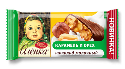 Молочный шоколад "Аленка" с мягкой карамелью и орехом