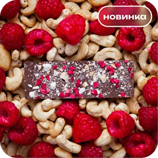 Молочный шоколад с дробленым кешью и малиной