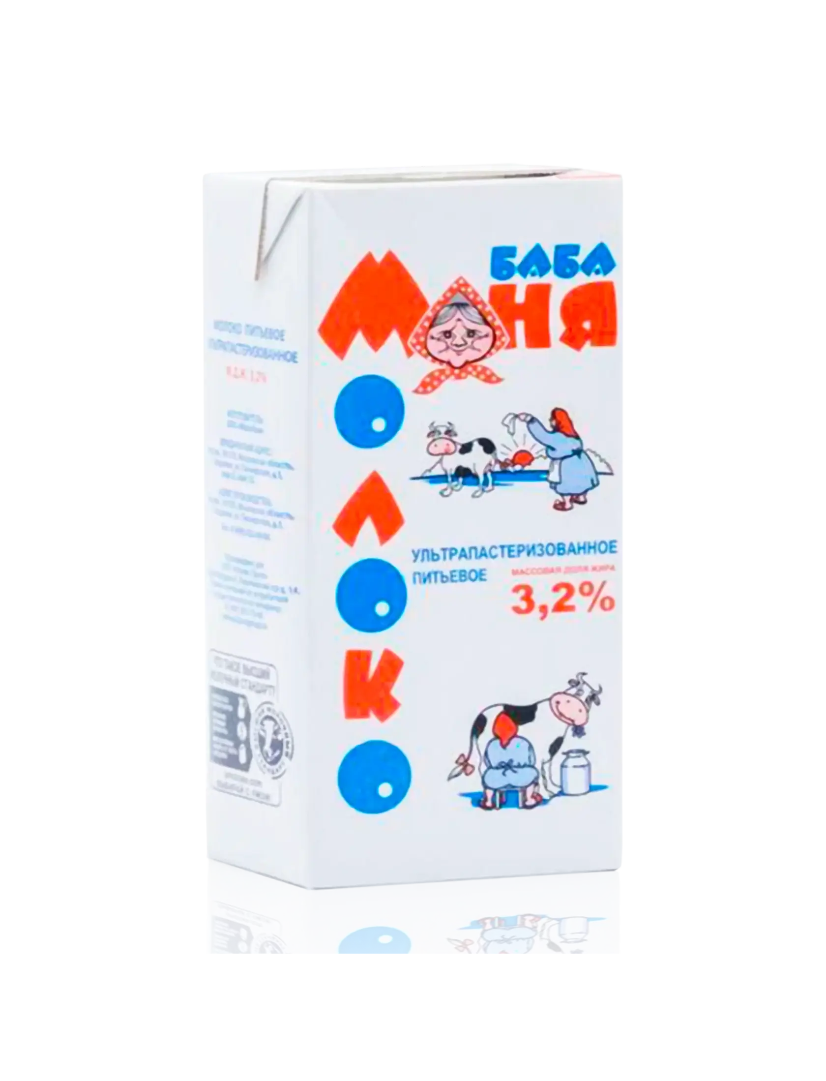 "Баба Маня"молоко питьевое ультрапастеризованное 3,2% — вкусное и свежее молоко, 100 % натуральное. Для производства используется только натуральное сырье без добавления консервантов, сухого молока, растительного жира и антибиотиков. Молоко «Баба Маня» имеет приятный сливочный вкус и хорошо подойдет для приготовления каш, соусов и других блюд.