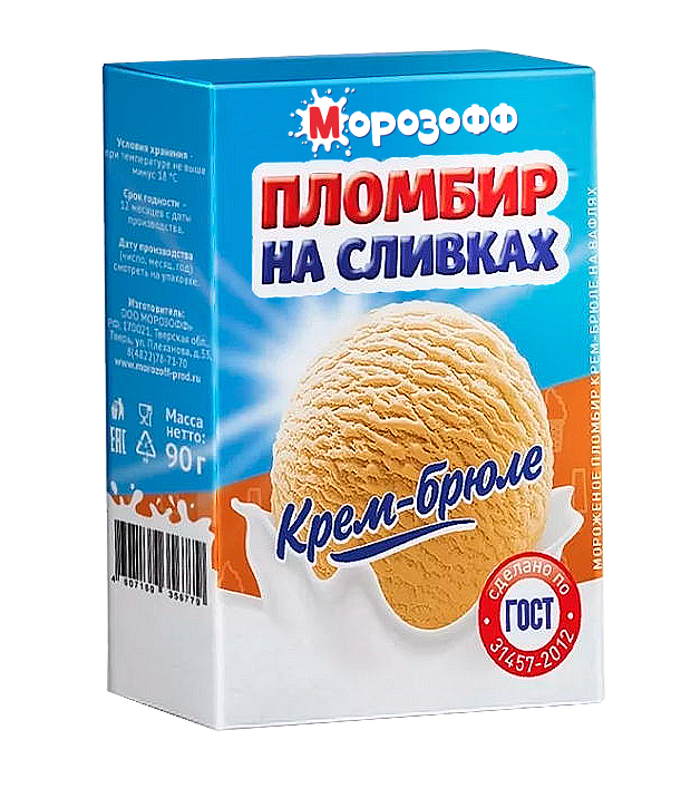 Мороженое "Пломбир на сливках" дарит удовольствие для настоящих ценителей. Наше классическое сочетание безупречного вкуса: нежное ванильное, 100% шоколадное и насыщенный крем-брюле.