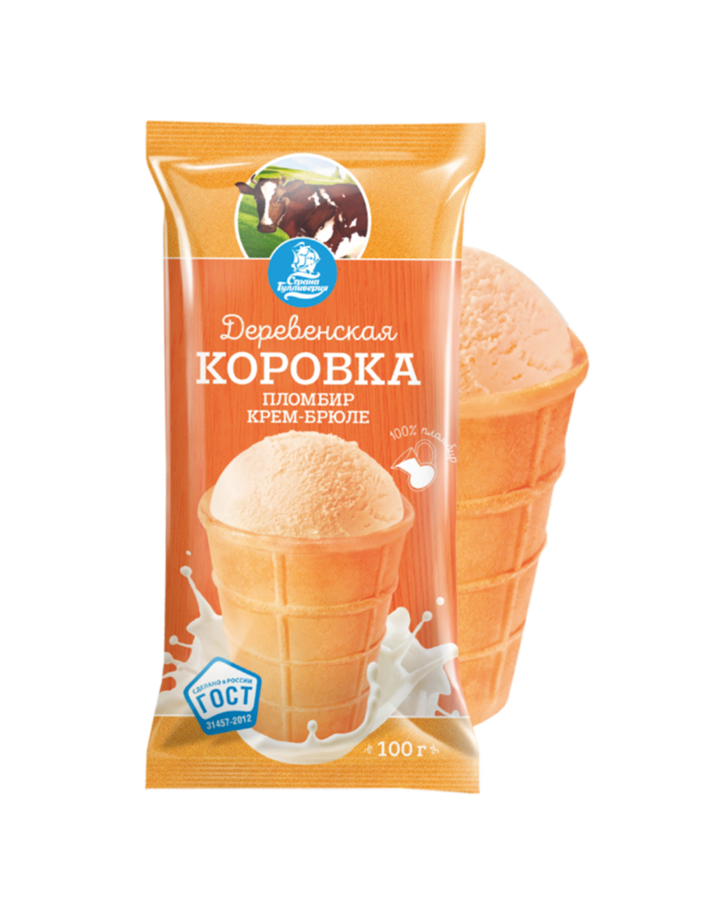 Мороженое пломбир крем-брюле в вафельном стаканчике.
